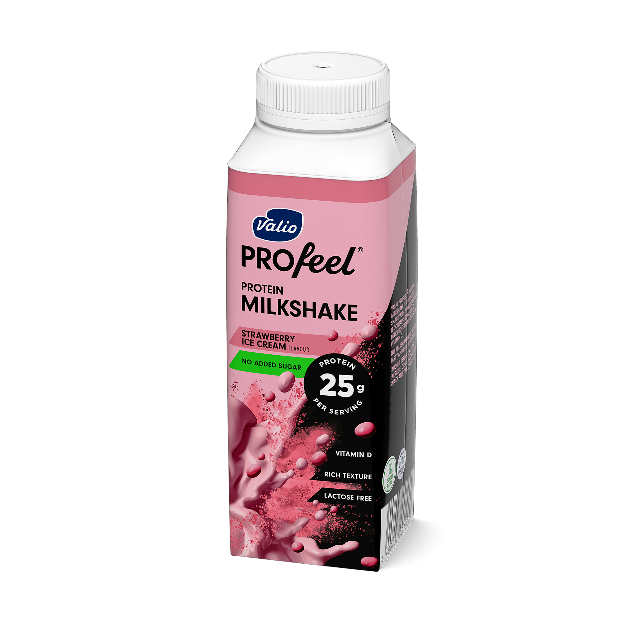 PROfeel braškių skonio baltyminis kokteilis – tai sodrios tekstūros, gaivaus braškių skonio užkandis be pridėtinio cukraus. Mėgaukis juo prieš treniruotę, po jos arba bet kada, kai norisi lengvesnio pasirinkimo. Vienoje pakuotėje yra 25 g aukštos kokybės pieno baltymų, kuriuose yra visos devynios organizmui būtinos aminorūgštys. Produktas yra be laktozės.