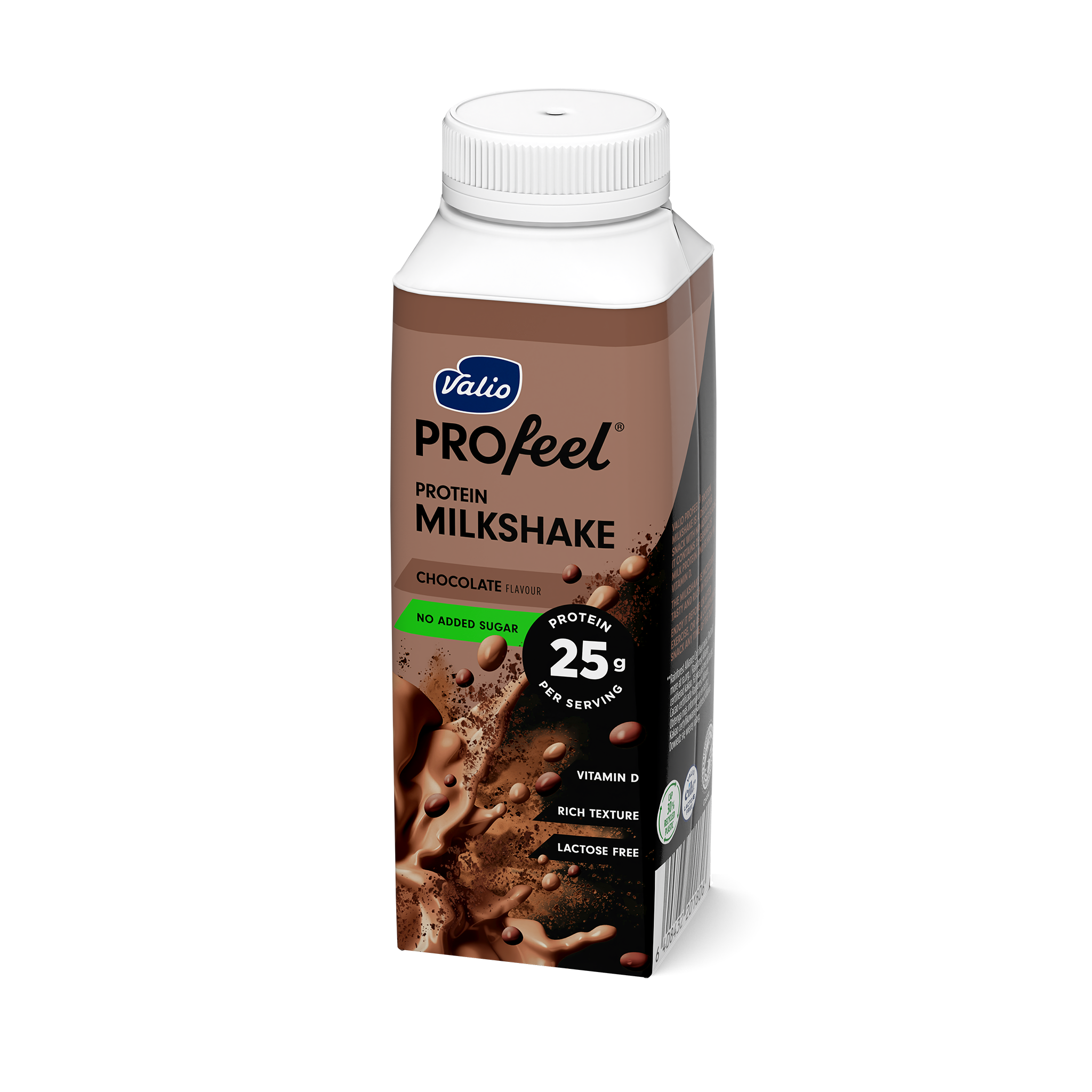 PROfeel šokolado skonio baltyminis kokteilis – tai sodrios tekstūros užkandis be pridėtinio cukraus. Mėgaukis juo prieš treniruotę, po jos arba bet kada, kai norisi lengvesnio pasirinkimo. Vienoje pakuotėje yra 25 g aukštos kokybės pieno baltymų, kuriuose yra visos devynios organizmui būtinos aminorūgštys. Produktas yra be laktozės.